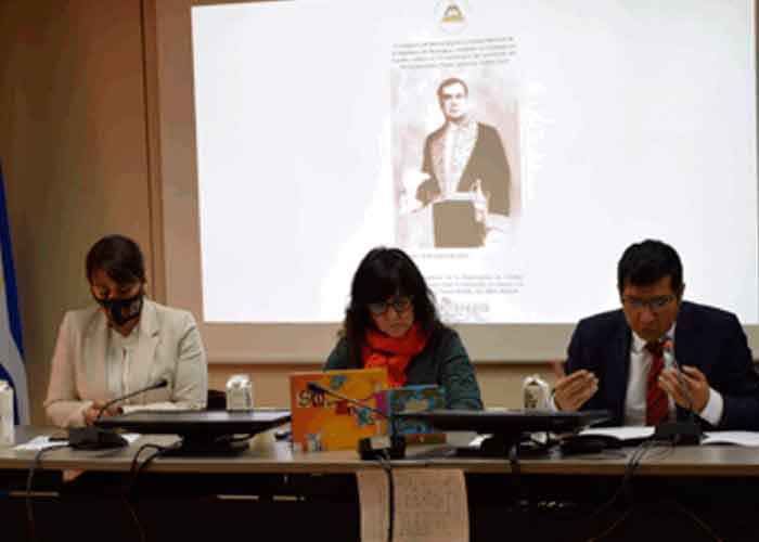 El acto, desarrollado con las medidas sanitarias pertinentes y, al que asistieron la Embajadora de Honduras, los Ministros Consejeros de Rusia, El Salvador, Guatemala, Bolivia, Diplomáticos de Venezuela y Brasil, Académicos, Intelectuales, Periodistas, Solidaridad con Nicaragua, contó con las palabras y el saludo de nuestro Buen Gobierno y Pueblo, por medio del Embajador, Compañero Carlos Midence.