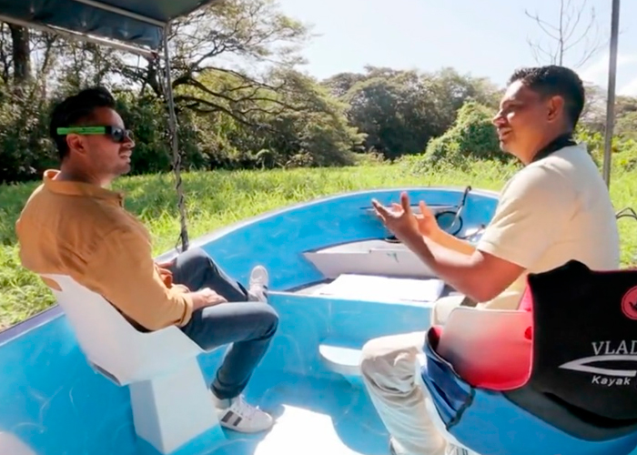 Luego de visitar el centro histórico de Granada se adentró navegando por el Lago para apreciar sus bellas 365 isletas, con las que quedó impresionado por la variedad de aves, peces, monos e incluso cocodrilos que encontró por su recorrido. Luego de alimentar a varios animales, disfrutó y aprendió a cocinar un buen pescado a la tipitapa con tostones.