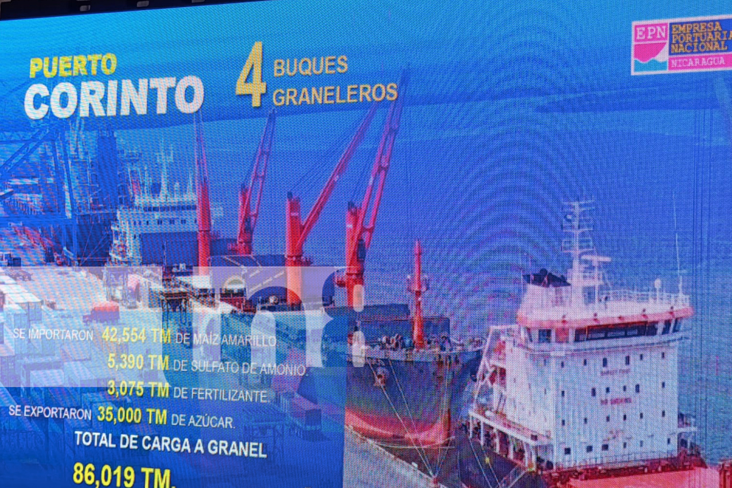 «En esta semana, en el Puerto Corinto, arribaron 10 barcos internacionales. Entre ellos, tenemos tres buques containeros que importaron 429 contenedores con cerámica, motocicletas y productos químicos provenientes de China, para una carga equivalente a 8,711 toneladas métricas. Asimismo, se exportaron 1,492 contenedores con azúcar, maní y licores con destino a los países de México, China y Canadá, equivalente a 14,897 toneladas métricas. El informe detalla que dos buques tanqueros importaron una carga líquida de 15,944 toneladas métricas».