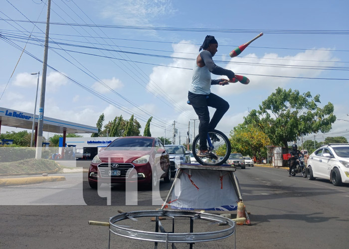 Cuando la luz roja del semáforo detiene el tráfico y los conductores se preparan para una pausa rutinaria; aparece una figura que transforma la espera en un espectáculo en Nicaragua.
