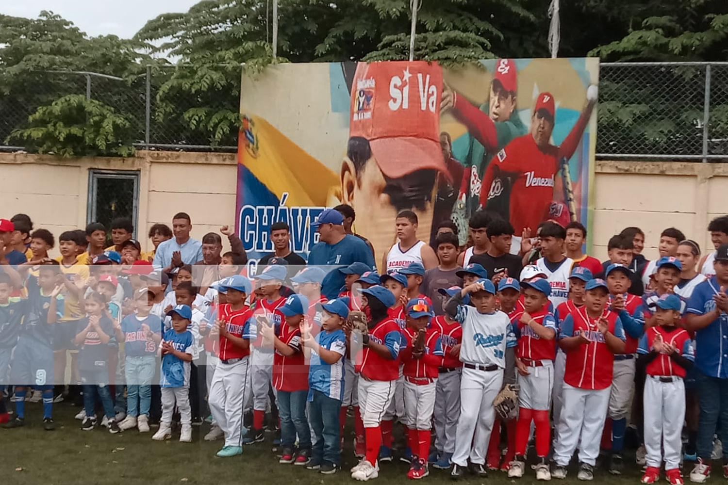Como parte del 71 aniversario del natalicio del comandante Hugo Rafael Chávez Frías, en Managua, se inauguró las ligas y torneos de béisbol con equipos de diversas categorías, honrando la memoria de este líder internacional y su legado.