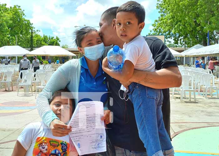 «Le doy primeramente gracias a Dios y a nuestro Comandante Daniel Ortega y a la Compañera Rosario Murillo por darnos la oportunidad de poder volver estar con nuestros hijos y nuestra familia en casa»; expresó Maria Ramírez, beneficiada.