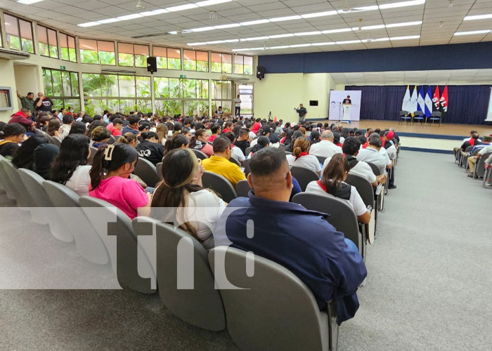 El evento, que se desarrolló en el auditorio principal de la universidad, contó con la presencia de estudiantes, docentes y autoridades locales; quienes recordaron al comandante como un ejemplo de lucha, sacrificio y visión para el futuro de Nicaragua.