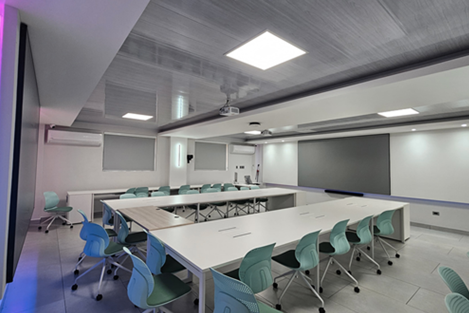 Estos espacios están diseñados para facilitar una educación moderna y de calidad, permitiendo el desarrollo de presentaciones académicas, investigaciones, producción audiovisual, conferencias virtuales, capacitaciones, talleres y procesos de formación docente.