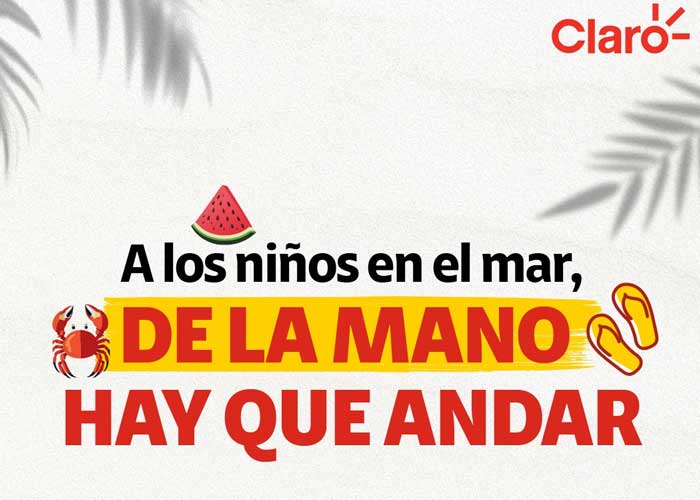 2. Cuidar a la niñez y evitar su extravío: En esta copla, Claro Nicaragua hace un llamado a los padres de familia a cuidar a los niños y niñas en los distintos balnearios, por ello: “A los niños en el mar, de la mano hay que andar”.