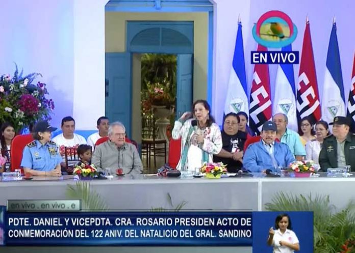 El presidente de la República de Nicaragua, Daniel Ortega, y la vicepresidenta, Rosario Murillo, presiden acto de conmemoración por el aniversario 122 del nacimiento del General Augusto C. Sandino.