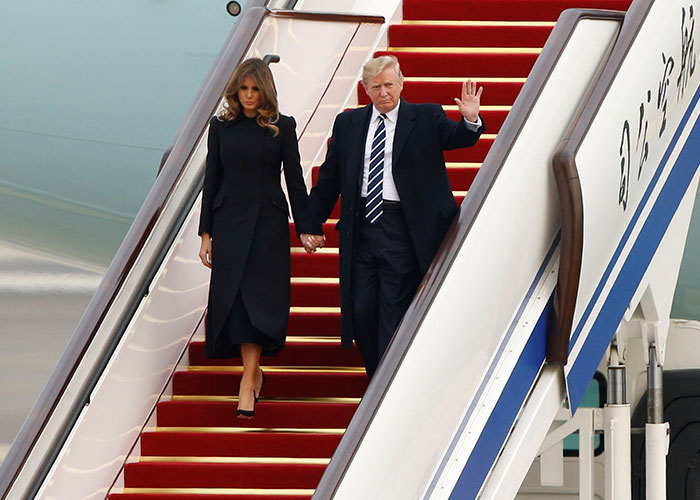 Poco después de que el Air Force One llegara al aeropuerto de Pekín procedente de la base aérea surcoreana de Osan, Trump y su esposa, Melania, montaron en el Cadillac presidencial blindado (también conocido como La Bestia) y viajaron al palacio seguidos por una comitiva de casi un centenar de vehículos.