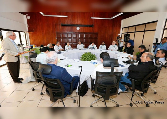Se inició el encuentro de negociación con las palabras de bienvenida del señor Enrique Bolaños Abaunza, rector del INCAE. Posteriormente el mensaje de invocación al Altísimo de su Eminencia Cardenal Leopoldo José Brenes Solórzano, y el Nuncio Apostólico, Su Excelencia Waldermar Stanislaw Sommertag saludó y bendijo el inicio de la negociación como representante de la Santa Sede.