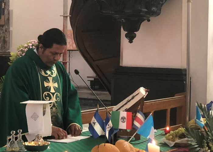 La celebración litúrgica estuvo a cargo del padre Zoilo Puglla, quien solicitó por la paz y la reconciliación de las familias de Centroamérica y América Latina. Por su parte la comunidad solicitada por la justicia y el progreso para todos y la alegría de vivir como hermanos hijos del mismo Padre Dios.