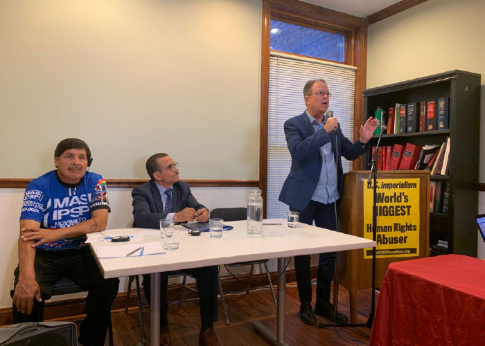 Durante el evento el señor Brian Becker, líder de Answer Coalition, manifestó que la Revolución Sandinista es recordada con mucho cariño por el pueblo estadounidense que siguió de cerca en los años ochenta su lucha por la paz ante las políticas injerencias del Presidente Reagan y los ataques de la contra revolución. “Hoy una vez más, vemos como el pueblo y gobierno de Nicaragua son víctimas de los ataques del imperio y es por eso que en nombre de todas las organizaciones aquí reunidas queremos reiterarles nuestra firme solidaridad y respaldo”.