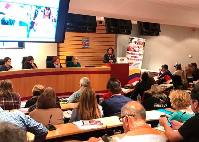 La extraordinaria jornada, en la que no quedó asiento libre, contó con la presencia de Tony Burke, secretario ejecutivo del sindicato Unite; Ken Livingston, ex alcalde de Londres; profesor Francisco Domínguez, secretario ejecutivo de VSC, Fidel Narváez, activista ecuatoriano que trajo el mensaje del pueblo ecuatoriano, la co-fundadora de Stop the War, Lindsey Germán y las embajadoras, Teresita Vicente, de Cuba; Guisell Morales, de Nicaragua y Rocío Maneiro, de Venezuela.
