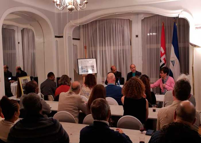 En el conversatorio que fue realizado en la Embajada de Nicaragua en Bélgica con la participación de organizaciones de solidaridad y residentes en Bélgica de varias nacionalidades, entre otras de Bélgica, Congo, Camerún, Marruecos, Haití, Togo, Colombia, Chile, España, Francia, Ecuador y Venezuela, demandó el respeto a la soberanía de Nicaragua desenmascarando la argumentación de la derecha golpista y la falsa precepción de Europa con relación a Nicaragua influenciados por el interés del imperialismo norteamericano de detener los procesos de desarrollo, progresos compartidos y avances sociales, políticos y económicos de nuestro pueblo.
