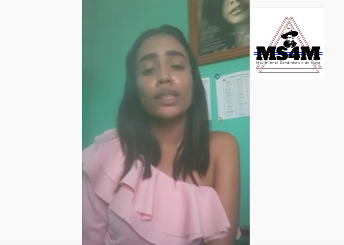 Carla Caldera es miembro del Movimiento Sandinisa 4 de Mayo, quien brinda un mensaje sobre el respeto al derecho a trabajar de todos los nicaragüenses.