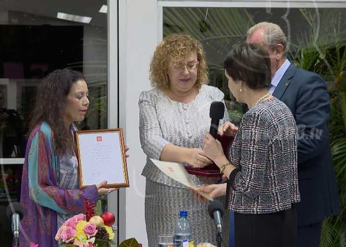 La Vicepresidenta de la Duma Estatal de la Federación Rusa, Olga Yepifanova, entregó en nombre de su gobierno este reconocimiento como parte de las histórica amistad, solidaridad, y gran lazo de cooperación que existe con Nicaragua.