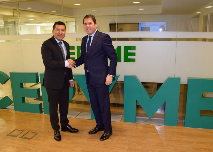 El Empresario español Gerardo Cuerva, Presidente de la Confederación Española de la Pequeña y Mediana Empresa, CEPYME, y Presidente de la Cámara de Comercio de Granada, sostuvo una Reunión hoy 28 de Enero en la Sede de esta Organización, con el Embajador de Nicaragua, Compañero Carlos Midence.