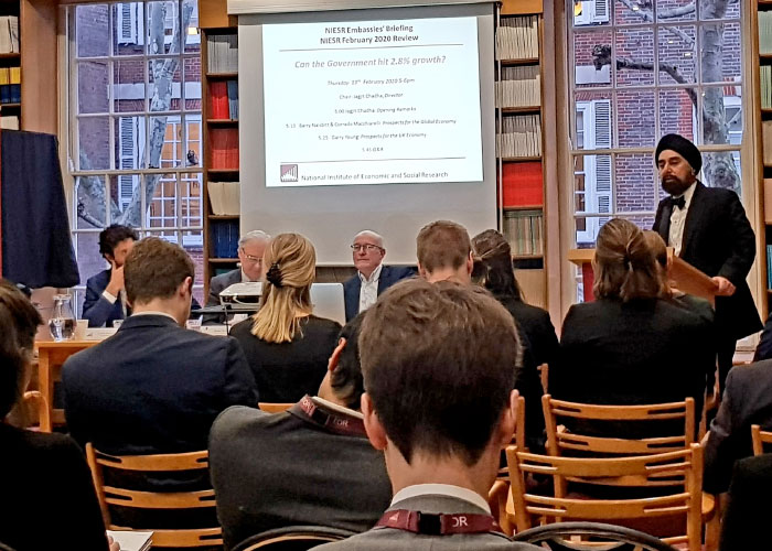 Los oradores, Jagit Chadha, Director del NIESREconomista Principal, y Garry Young, Director de Previsión Económica, compartieron sus opiniones sobre las perspectivas económicas para Reino Unido y el Mundo en el 2020.