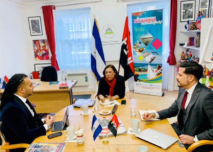 El Señor Andrien Meyers, recientemente nombrado por el Gobierno de Nicaragua como Consejero Diplomático Honorario para Inversiones de la Embajada de Nicaragua en el Reino Unido, visitó la sede de nuestra Embajada en ese país.