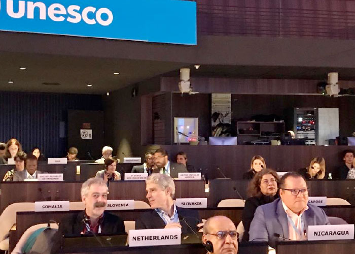La Delegación de Nicaragua está representada por el Compañero Javier Gutiérrez, Viceministro del MARENA y Punto Focal Nacional del Panel de Expertos de Naciones Unidas sobre Cambio Climático (IPCC) y la Compañera Sylvia Miranda, Delegada Permanente Alterna de la Delegación Permanente de Nicaragua ante la UNESCO.