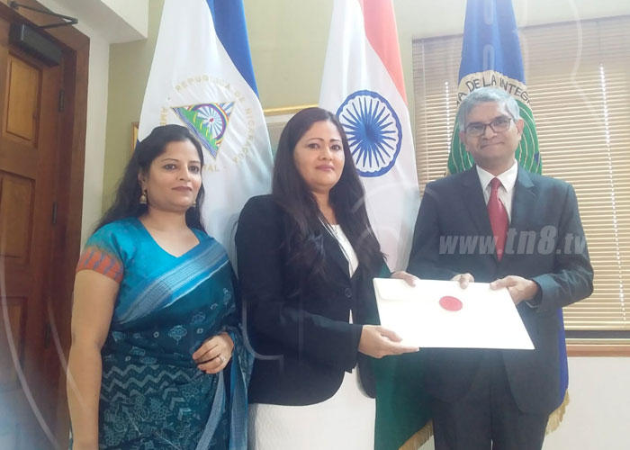 "Estamos dándole la bienvenida al embajador Upender Shingh Rawat, de parte de nuestro Gobierno de Reconciliación y Unidad Nacional. El día de hoy estamos recibiendo sus copias de estilo ante la cancillería, que lo acreditan como embajador extraordinario y plenipotenciario ante nuestro Gobierno para seguir fortaleciendo los lazos de amistad y cooperación entre ambos países", manifestó Arleth Marenco, viceministra de Relaciones Exteriores.
