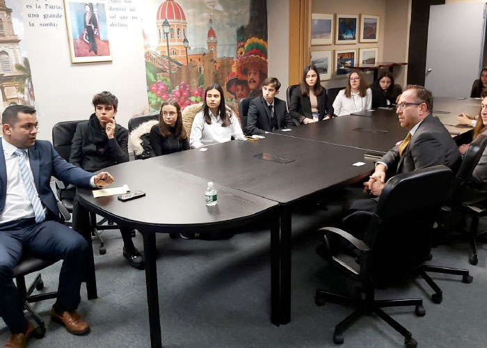 El Jueves 5 de Marzo de 2020, la Misión Permanente de Nicaragua ante las Naciones Unidas recibió visita de Estudiantes que participarán en la Conferencia de la Escuela Secundaria Nacional Modelo de las Naciones Unidas, con el objetivo de conocer las Políticas y la Cultura de Nicaragua, así como el trabajo que se realiza en Naciones Unidas.