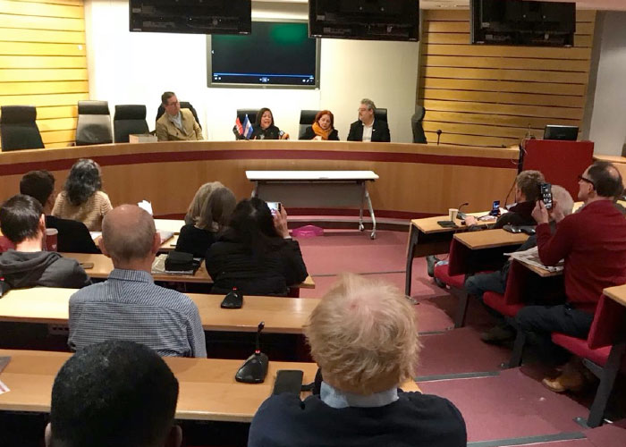 La Jornada en Saludo a las Mujeres Valientes y Victoriosas ha incluido, participación en Conferencia “Mujer: Redefiniendo el Éxito”, organizado por la Asociación de Mujeres de la Cancillería británica, y Encuentro con Grupos de Solidaridad con Nicaragua y América Latina, el 4 de Marzo.