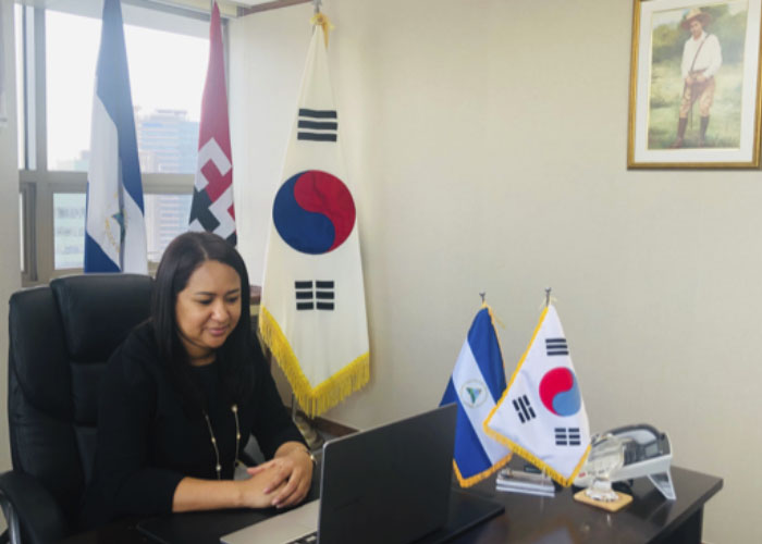 La embajadora de Nicaragua en la República de Corea participó este viernes en un seminario en línea sobre el nuevo coronavirus que provoca la enfermedad COVID-19.