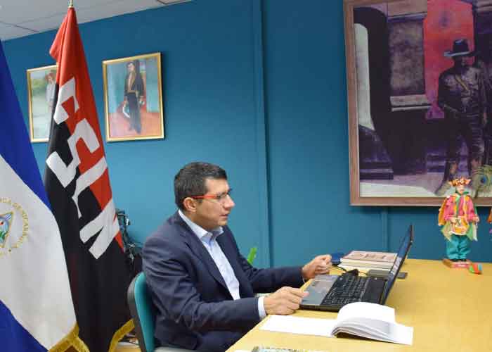 El Embajador Midence le trasladó los saludos de parte del Buen Gobierno de Nicaragua, presidido por el Comandante Daniel Ortega y nuestra Vicepresidenta, Compañera Rosario Murillo. Asimismo, le dio a conocer los avances y logros en cuanto a lo social, económico, político, cultural que ha impulsado el Gobierno Sandinista, como resultado de un Modelo que resguarda, incentiva y redistribuye, sustentado en el Ideario de Sandino.