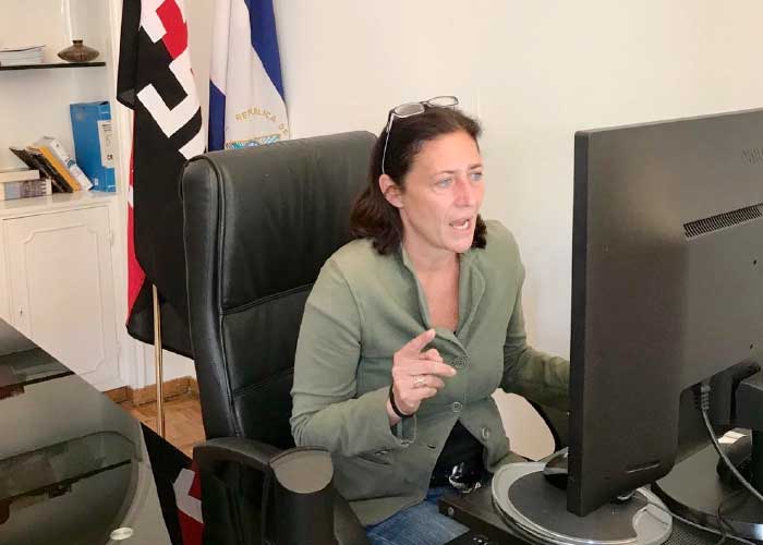 Durante el Encuentro Virtual, la Embajadora Mónica Robelo tuvo la oportunidad de manifestar el interés de nuestro Gobierno en promover la participación de nuestras Empresas, en particular de los Pequeños Productores hortaliceros, facilitando espacios de promoción de las exportaciones y acceso a Redes de Comercialización.