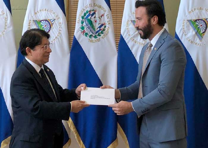 Este lunes 17 de Agosto, el Señor Hugo Javier Merino Lazo presentó Copias de Estilo ante el Compañero Denis Moncada Colindres, Ministro de Relaciones Exteriores de Nicaragua, que lo acreditan como Embajador Extraordinario y Plenipotenciario de El Salvador en nuestro País.