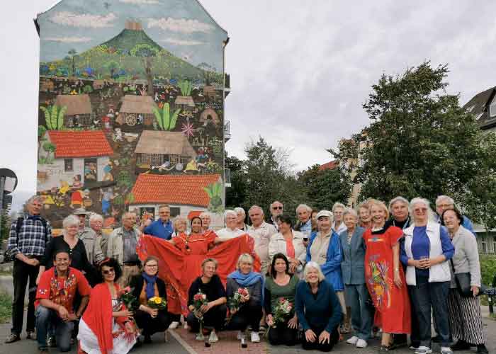 Por invitación de la Organización Solidaria con Nicaragua “Iniciativa por la Preservación del Mural de Monimbó-Nicaragua”, la Embajadora Tatiana García, participó en actividad por conmemoración del 35 aniversario del Mural “Pueblo de Monimbó 1978”, realizado por el nicaragüense Manuel García Moia en 1985, ubicado en la Plaza Monimbó del Distrito Lichtenberg de Berlín.