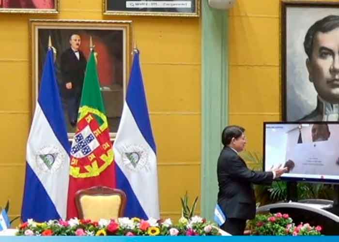 Las copias fueron recibidas por el canciller de Nicaragua, Denis Moncada quien le dio la bienvenida ante el Gobierno de Reconciliación y Unidad Nacional.