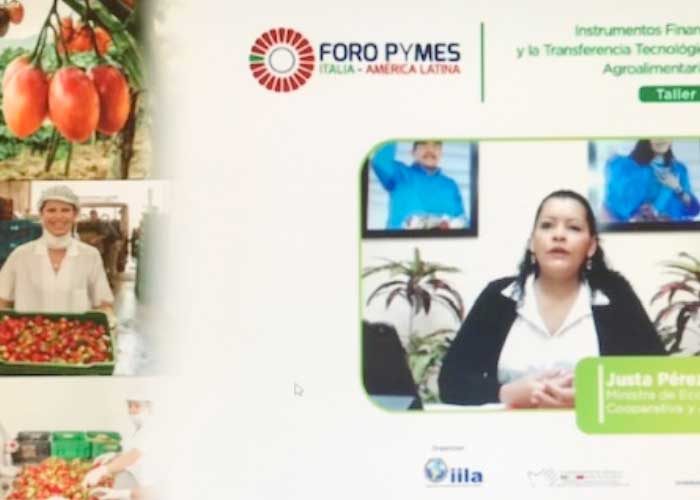 La Ministra de Economía Familiar, Comunitaria, Cooperativa y Asociativa de Nicaragua, Compañera Justa del Rosario Pérez, en coordinación con la Embajada de Nicaragua en Italia, ha representado a nuestro Gobierno en la Tercera Sesión de Encuentros Virtuales preparatorios al VI Foro Italo–Latinoamericano sobre PYMES, a realizarse en Antioquia en el año 2021; evento promovido por el Gobierno italiano a través del Organismo Internacional IILA.
