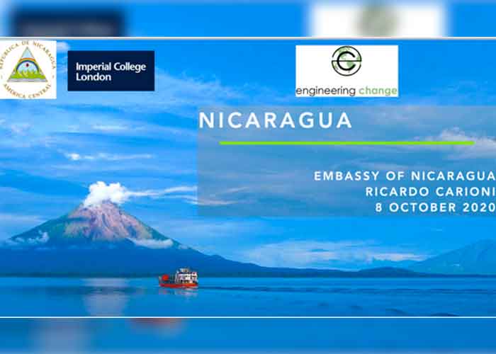 Nicaragua, Única, Original, Bendita y Siempre Libre, fue expuesta por la Embajada de Nicaragua en Reino Unido, en seminario virtual de Intercambio sobre Nicaragua con Estudiantes de Ingeniería de la prestigiosa Universidad británica Imperial College de Londres, como parte de las actividades de bienvenida a nuevos estudiantes, promovida por la Organización Estudiantil Ingenieros por el Cambio, que gestiona y realiza intercambios y voluntariado para sus miembros en proyectos de impacto social en todo el mundo.