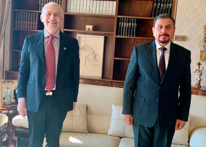 El Señor Rahman Farhan Alaameri, Embajador de la República de Irak ante la Santa Sede, sostuvo un amistoso encuentro con el Compañero Francisco Javier Bautista Lara, Embajador de Nicaragua, sobre Cultura, Historia, Tradiciones y asuntos Contemporáneos; coincidieron en la importancia de las relaciones de respeto entre las naciones para fortalecer la Convivencia y la Paz en la Casa Común. Expresaron los saludos mutuos de los Gobiernos y Pueblos que representan.