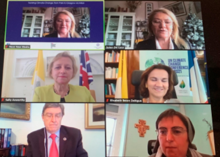 Las embajadas de Reino Unido, Francia e Italia ante la Santa Sede promovieron el Jueves 10 de Diciembre un panel virtual: “Facing Climate Change: From Paris to Glasgow via Milan” (Hacer frente al Cambio Climático: de Paris a Glasgow por Milán), en preparación a la Conferencia de las Naciones Unidas sobre el Cambio Climático COP26, prevista para Noviembre 2020, pero pospuesta por la pandemia para noviembre de 2021, en Glasgow, Escocia.