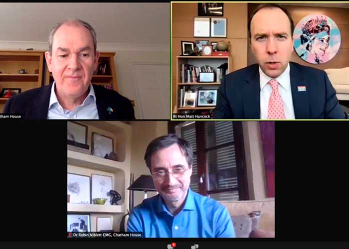 El Gobierno de Nicaragua, por medio de su Embajada en Londres, estuvo presente hoy 26 de Enero en webinario “El Futuro de la Salud Global” con el Ministro de Salud del Reino Unido, Señor Matt Hancock, organizado por el Instituto Real de Asuntos Internacionales (Chatham House), sobre las Políticas e Iniciativas del Reino Unido para enfrentar el COVID-19 y la Estrategia de Salud Pública Global contra la Pandemia y cómo asegurar la cobertura de Salud Universal.