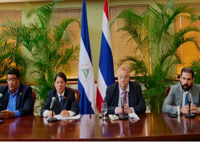 Luego de la Presentación de sus Copias de Estilo, el nuevo Embajador Tailandés sostuvo una Reunión de Trabajo con el Canciller Denis Moncada; el Compañero Laureano Ortega, Asesor de Inversiones, y el Compañero Paul Oquist, Secretario de Políticas Nacionales de la Presidencia, en la que se abordaron temas de Cooperación, Energías Renovables, Agricultura, Sistema de Salud, Turismo e Inversión entre ambos Países, además de las ventajas que ofrece nuestro país en la seguridad de las inversiones extranjeras.