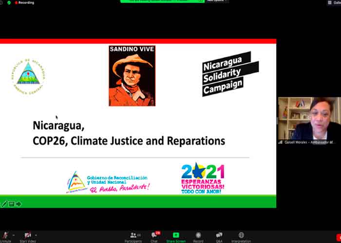 La Campaña de Solidaridad con Nicaragua, junto a la Alianza de Trabajadores de la Tierra de Reino Unido en Reino Unido, y Amigos, organizaron la noche del 10 de Febrero el Seminario Virtual “Nicaragua: Justicia Climática y Agroecología”, en el que participó nuestra Embajadora en el Reino Unido, Compañera Guisell Morales-Echaverry junto a Activistas de la Solidaridad, en el que se recordó el Legado Antiimperialista, de Solidaridad Internacional y de Soberanía, del General de Hombres Libres Augusto C. Sandino.