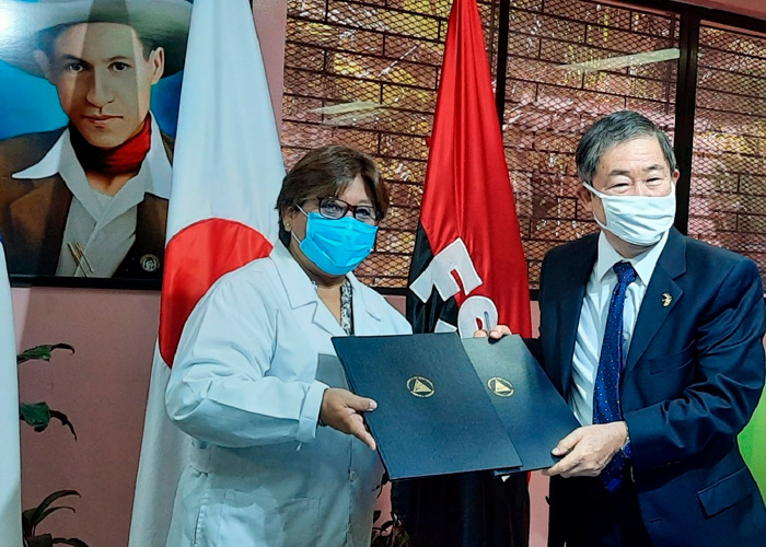 La Doctora Martha Reyes, Ministra de Salud y el Señor Yasuhisa Suzuki, Embajador de Japón en nuestro País, firmaron este Martes una Nota de Canje para una donación de 2.8 millones de dólares consistente en equipamiento hospitalario como parte del Programa de Desarrollo Económico y Social y que será destinado a 18 Hospitales del País en la lucha contra la COVID-19.