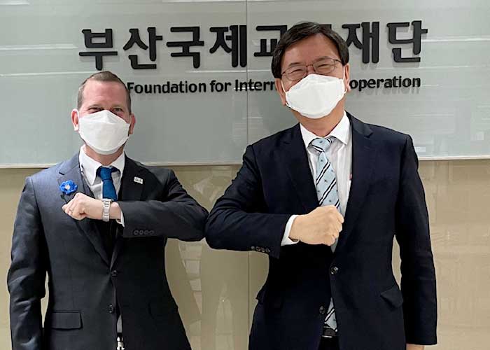 Entre otros temas de importancia se abordó también un posible hermanamiento de ciudades con la ciudad de Busan en la República de Corea, cuya importancia portuaria, turística y pesquera la colocan como la segunda ciudad más importante de este país después de su capital Seúl.