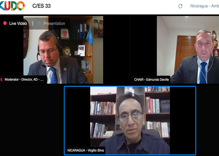El Consejo de la Organización Marítima Internacional, con sede en Londres, sostuvo su 33 Sesión Extraordinaria el 8 de Abril, a la que asistió el Gobierno de Reconciliación y Unidad Nacional representado por el Compañero Virgilio Silva, Presidente de la Empresa Portuaria Nacional, el Capitán Manuel Mora, Director de Transporte Acuático, con acompañamiento de nuestra Embajada en Reino Unido.