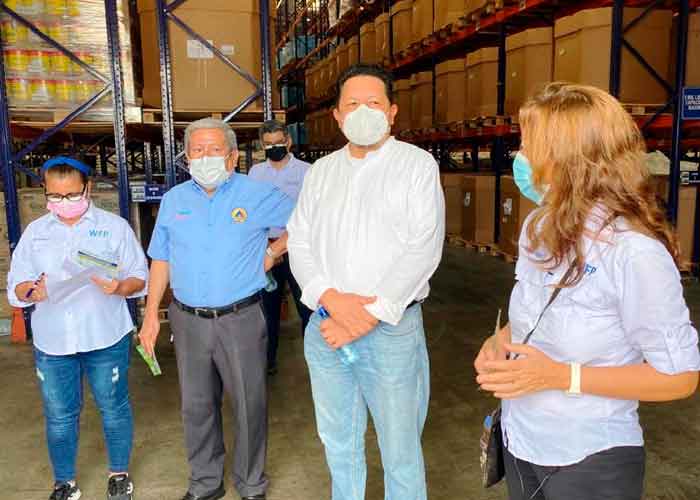 Durante el recorrido pudieron presenciar el proceso logístico de pesaje, empaquetamiento y traslado de los alimentos consistentes en aceite, frijol, arroz, harina y maíz, los que estarían destinados a entregar a 64,023 familias de Estudiantes, afectados por los huracanes Eta e Iota.