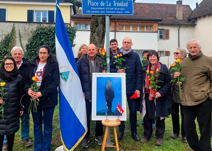 Durante, un acto simbólico se realizó en la Plaza Trinidad, en Delémont Suiza, esta plaza lleva el nombre de la ciudad esteliana, en honor al hermanamiento que tiene la Ciudad de Delémont con la ciudad la Trinidad.