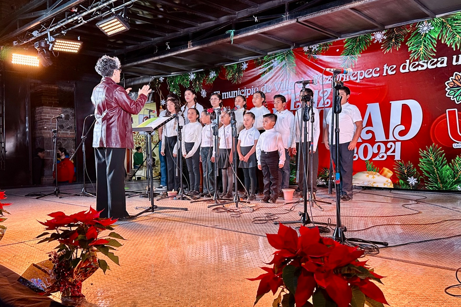 Durante el tradicional Encendido del Árbol Navideño, que se realizó el 30 de noviembre de 2024, se presentó el grupo “Coral, niños y niñas cantores de Hidalgo”, que cantaron villancicos y cantos en náhuatl.