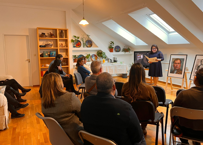 Hoy Lunes 23 de Enero del 2023, la Embajada de Nicaragua en Austria, llevó a cabo la actividad “Un Café con Darío” en homenaje al 156 aniversario del natalicio del más Grande de la Poesía Nicaragüense, Nuestro Poeta Félix Rubén García Sarmiento, mejor conocido como Rubén Darío.