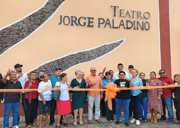 Con una emotiva cantata y al ritmo de la Cumbia Chinandegana, se celebró la inauguración del Teatro Municipal Jorge Paladino, en honor a nuestro General de Hombres y Mujeres Libres, Augusto C. Sandino.