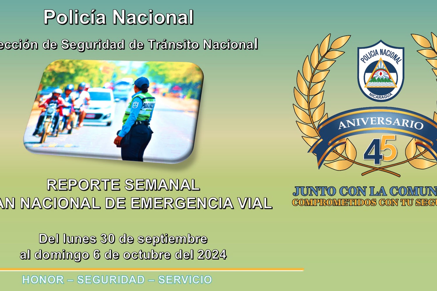 PLAN NACIONAL DE EMERGENCIA VIAL del lunes 30 de septiembre al domingo 6 de octubre 2024.