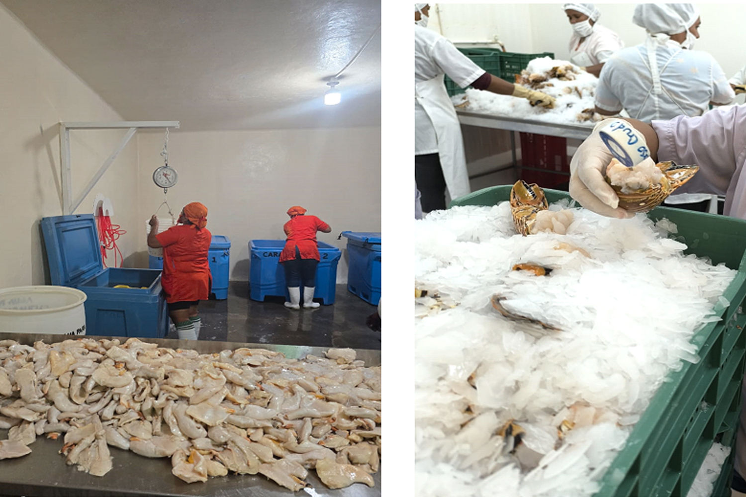CAF, procesa langosta, productos de la pesca como caracol y escamas, la vigilancia sanitaria de IPSA se basa en verificación de la implementación de los sistemas de gestión de seguridad alimentaria.