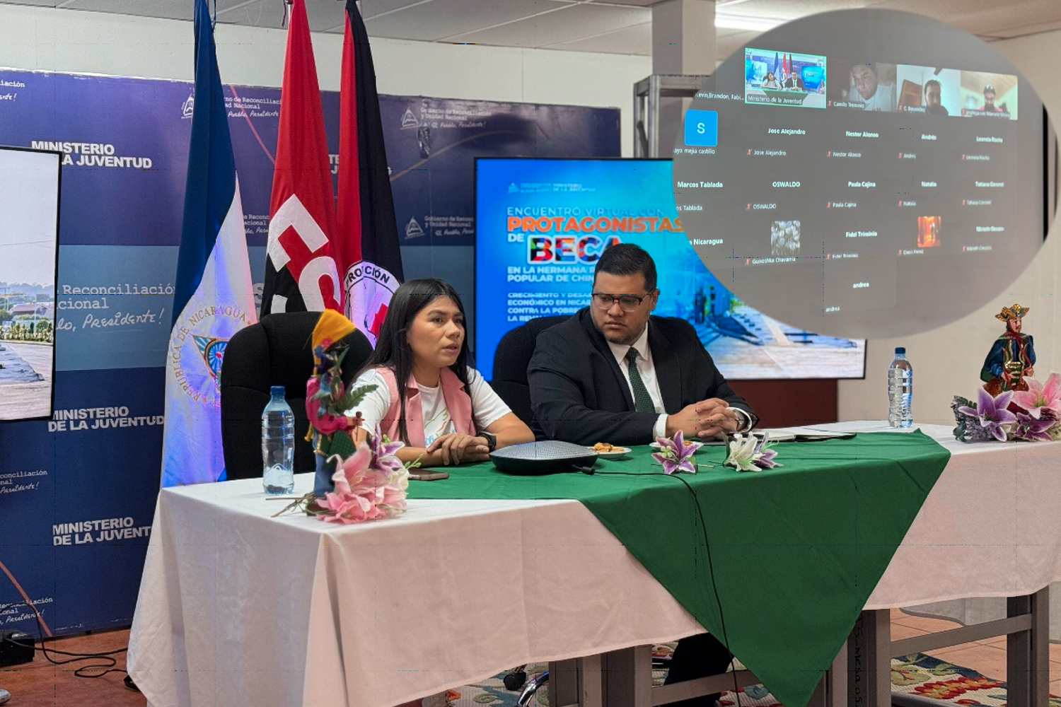 El Ministerio de la Juventud desarrolló este jueves 24 de abril la cuarta sesión del Segundo Ciclo de Encuentros Virtuales con jóvenes nicaragüenses que actualmente cursan estudios en la República Popular China. Esta jornada, realizada bajo el lema “La lucha contra la pobreza es el motor de la Revolución”, estuvo centrada en los avances económicos de Nicaragua, y reafirmó el compromiso de la juventud con el progreso de la nación.