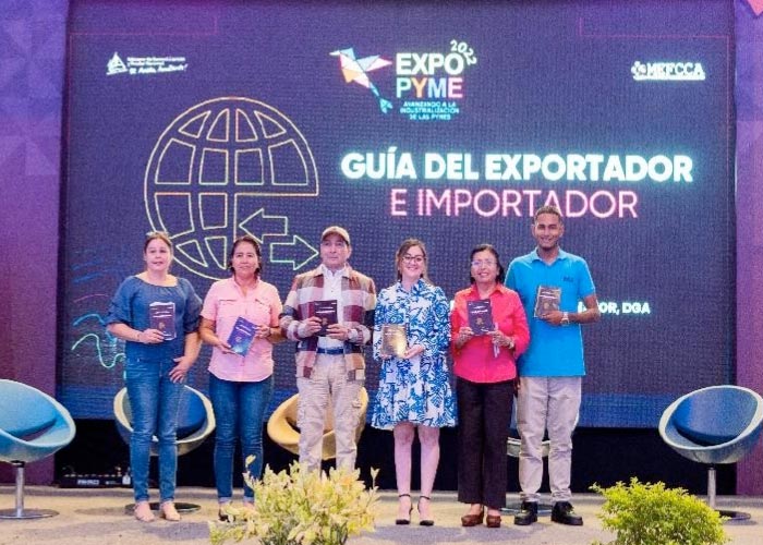 En coordinación con las instituciones CETREX, DGA, IPSA, INPESCA, MARENA e INAFOR realizamos el lanzamiento de la Guía del Exportador e Importador, un documento informativo donde se establecen los procesos y requisitos para la exportación e importación de productos y trámites para la internacionalización de las PYMES.